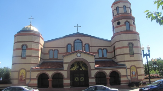 Η εκκλησία του Αγ. Γεωργίου μετά την ανακαίνιση κατά την οποίαν προστέθηκαν ο πρόναος και οι δυο τρούλοι, όπου στον δεξιό στεγάζεται το καμπαναριό.