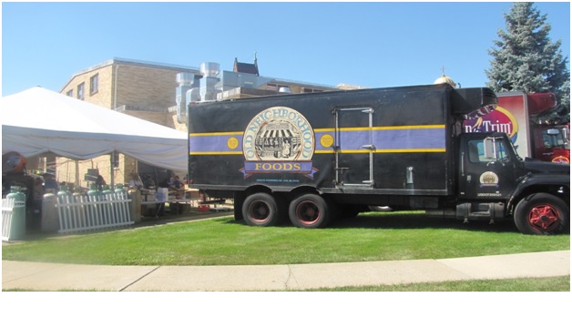 Τα φορτηγά της εταιρίας παρκαρισμένα στον χώρο της γιορτής κρατούν φρέσκα τα φαγητά.
